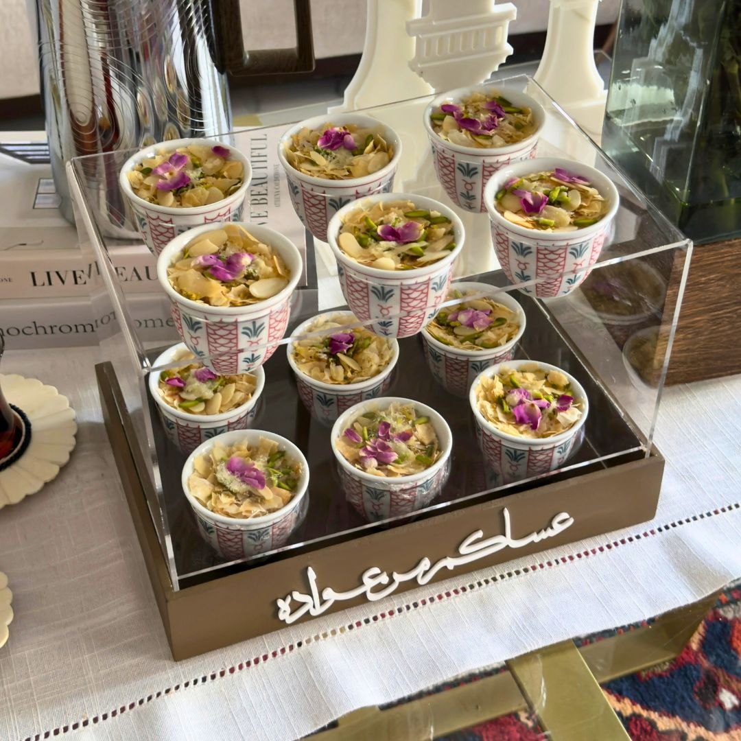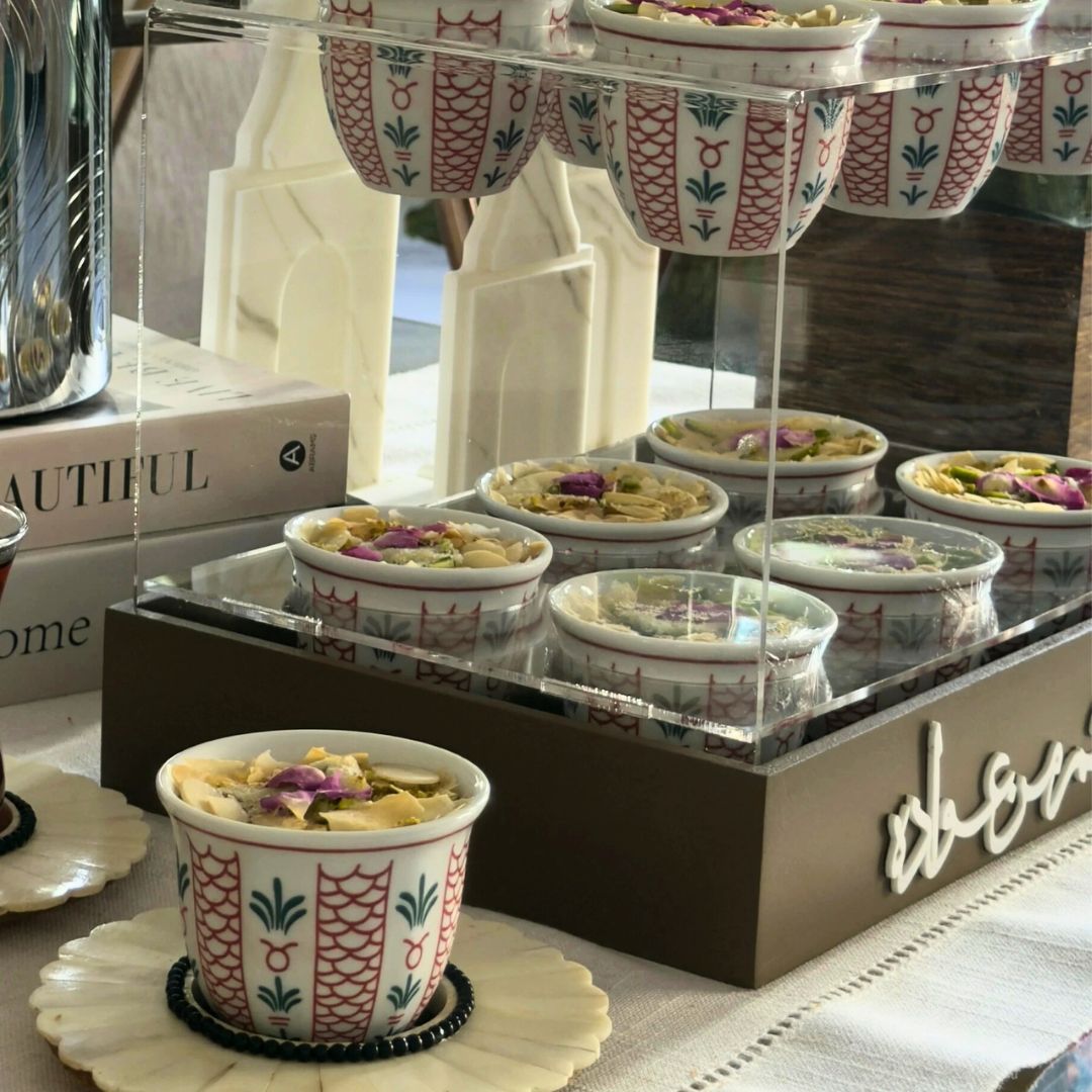 Celebrate the Holy Month with the perfect sweet treat. Our exclusive Ramadan Muhallabia Acrylic Box is designed to bring joy to your Iftar table or serve as a beautiful gift (“Nagsa”) for your loved ones.
