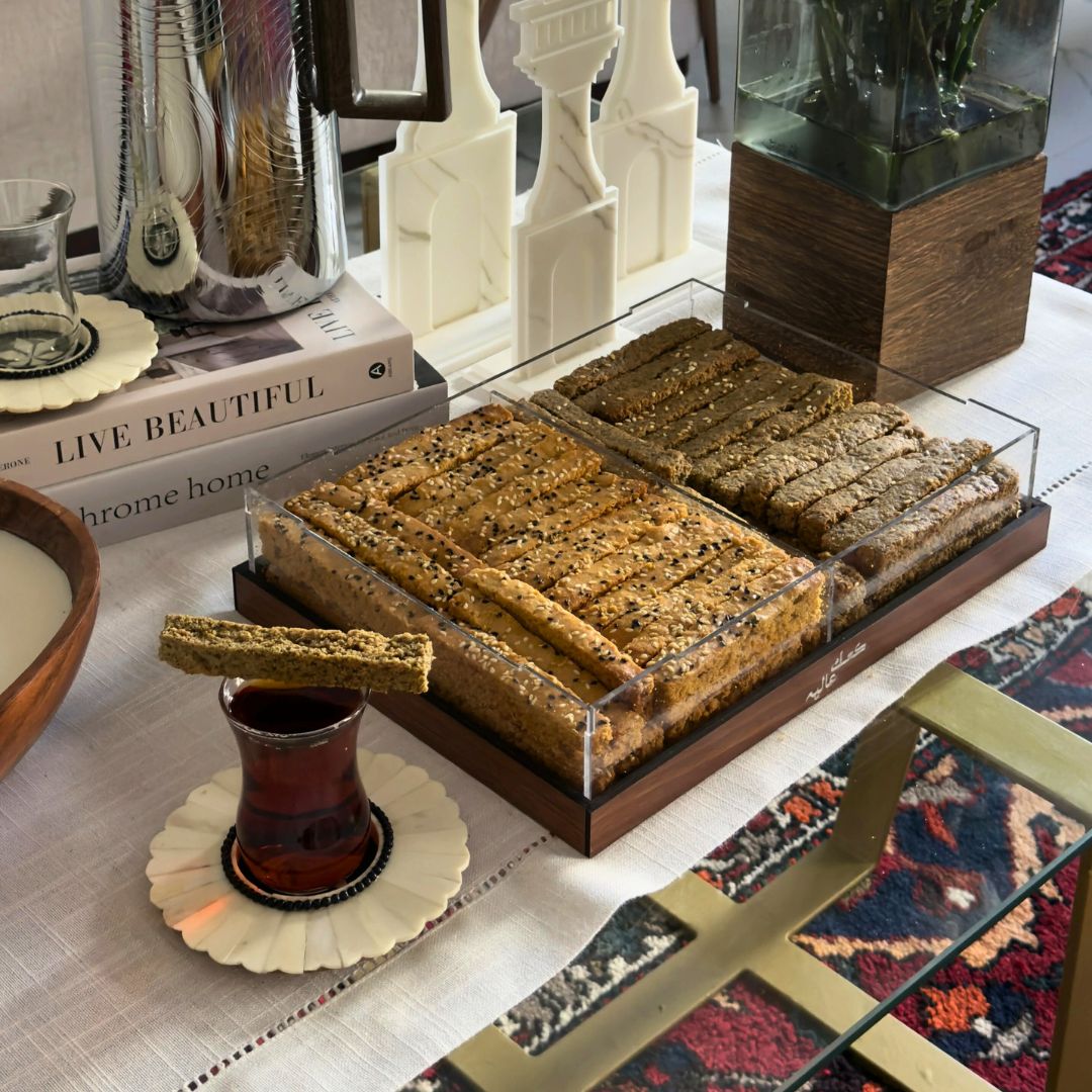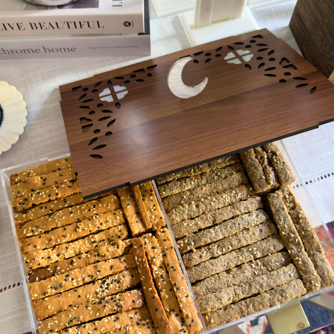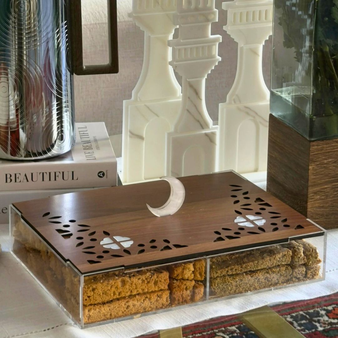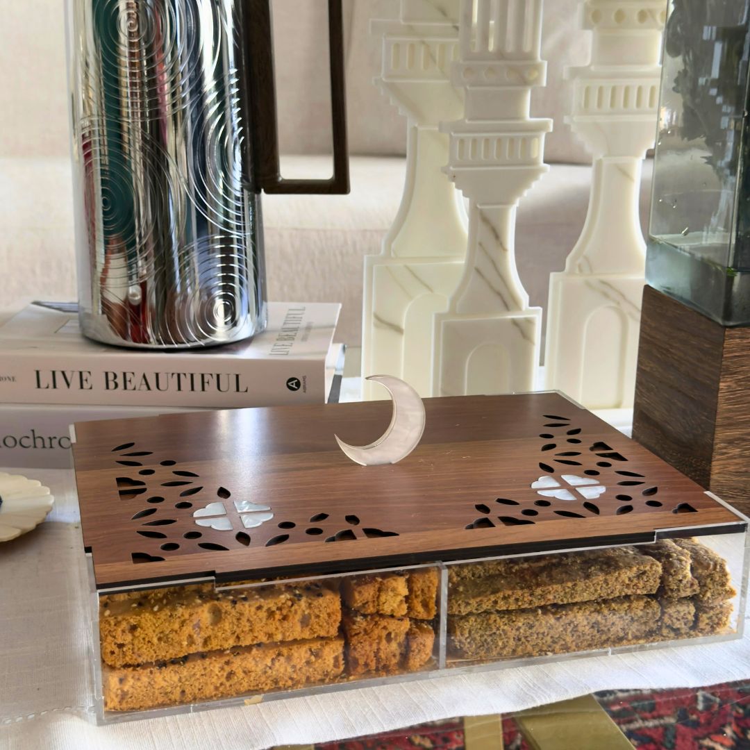 Add a festive touch to your Ramadan gatherings with our beautifully designed Crescent Box (Boox Al Hilal). Shaped like the iconic Ramadan moon, this box is the perfect “Nagsa” (gift) for family and friends, or a delicious centerpiece for your own table.